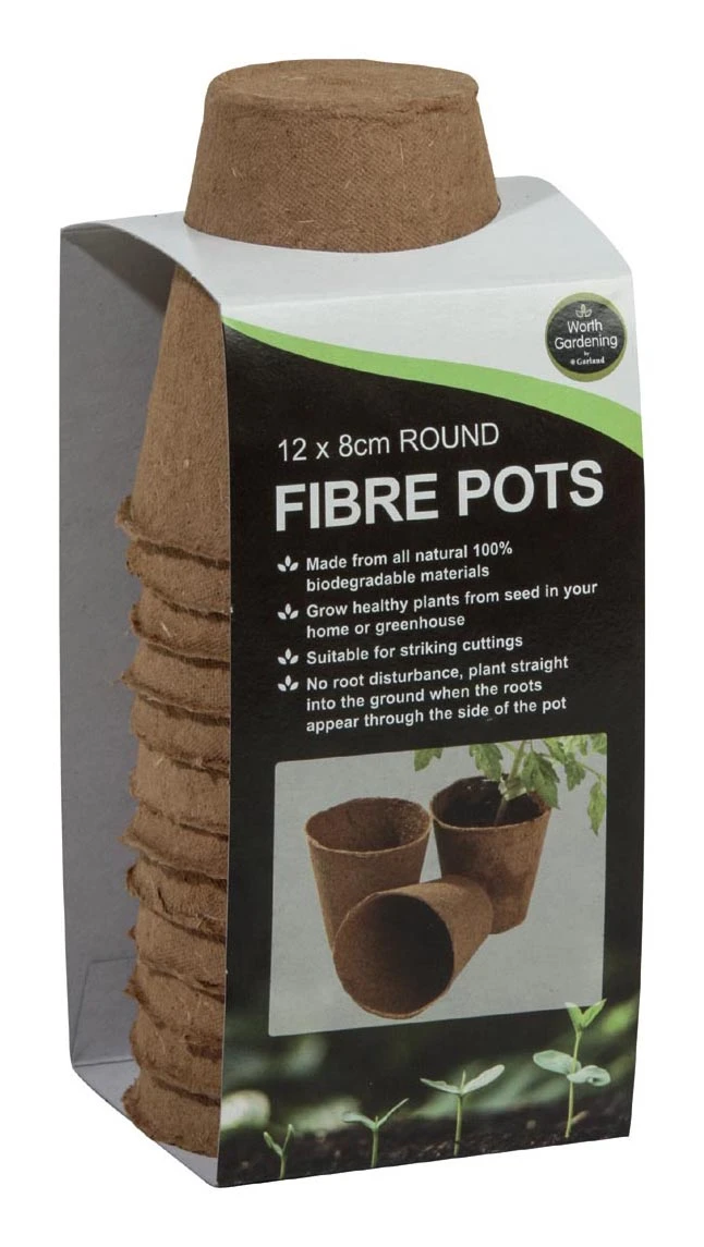 Dieser Artikel enthält 12 oder 48 Stück runde Fibre Pots mit einem Durchmesser von 8 cm.