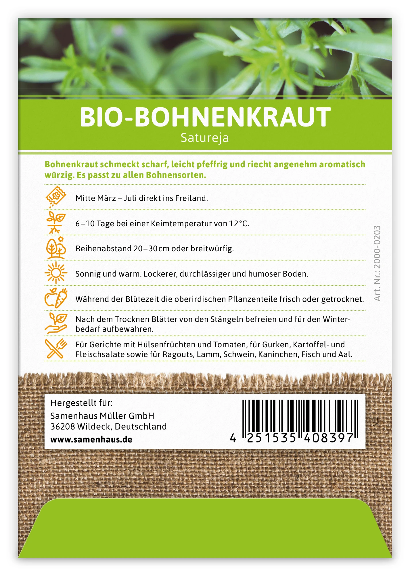 Bohnenkraut schmeckt scharf, leicht pfeffrig und riecht angenehm aromatisch würzig. Es passt zu allen Bohnensorten.