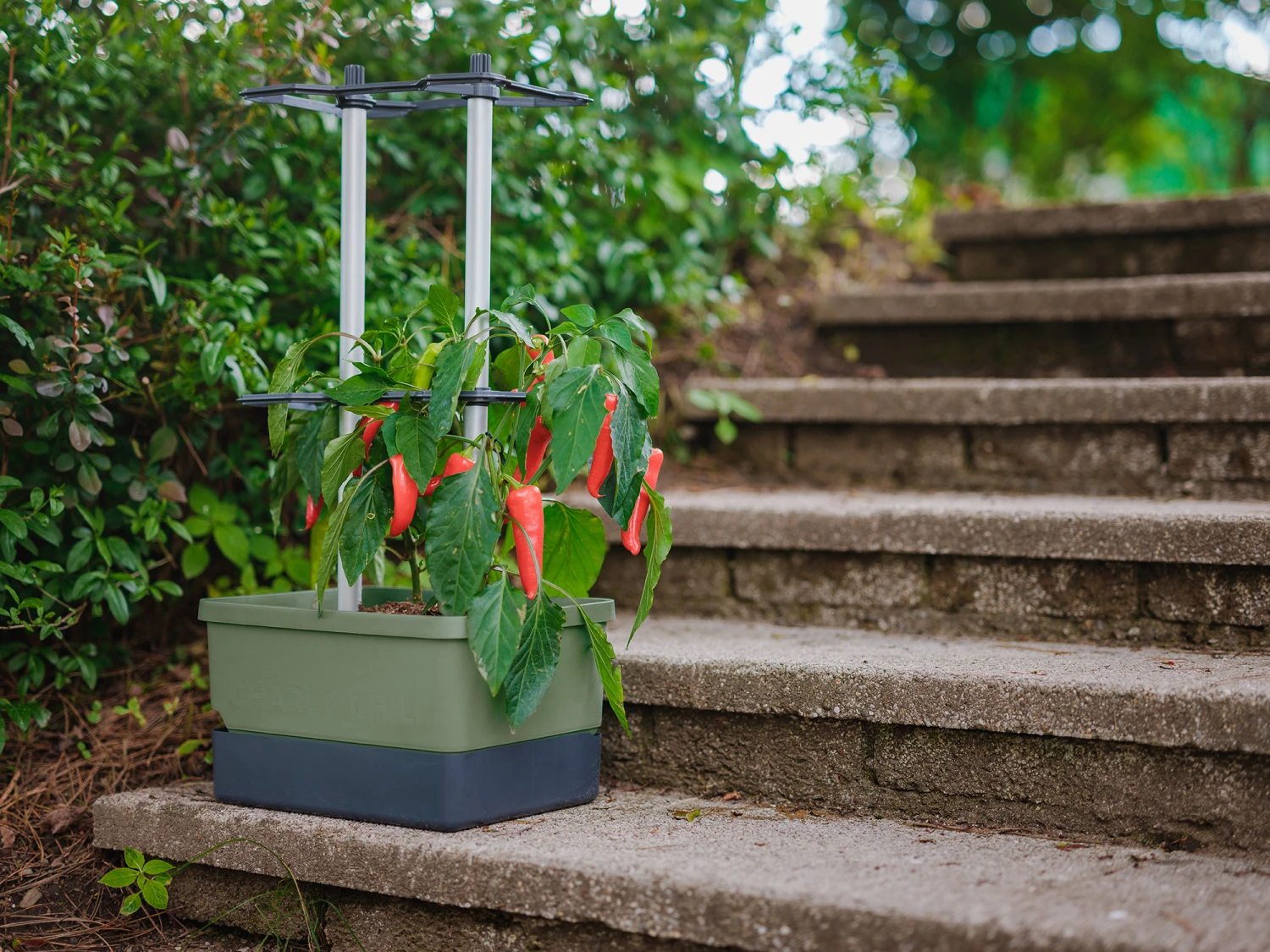 Eigene Chilis & Paprika zu ernten war noch nie einfacher. Die integrierte Bewässerung & das stabile Ranksystem machen das ertragreiche Anpflanzen von deinen eigenen Bio-Chilis am Balkon, auf der Terrasse oder im Garten zu einem Kinderspiel.