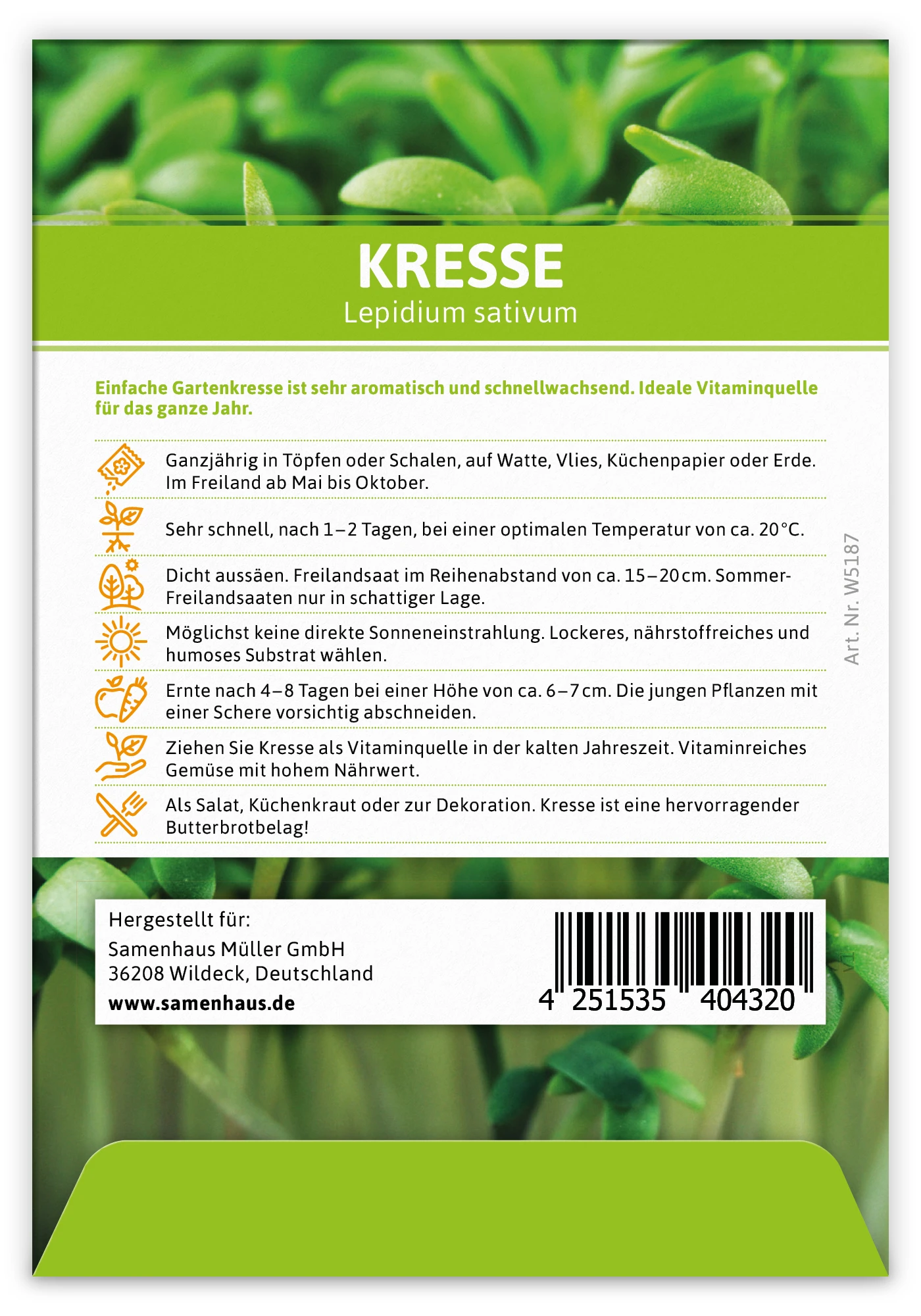 Ziehen Sie Kresse als Vitaminquelle in der kalten Jahres zeit. Vitaminreiches Gemüse mit hohem Nährwert. Als Salat, Küchenkraut oder zur Dekoration. Kresse ist eine hervorragender Butterbrotbelag!