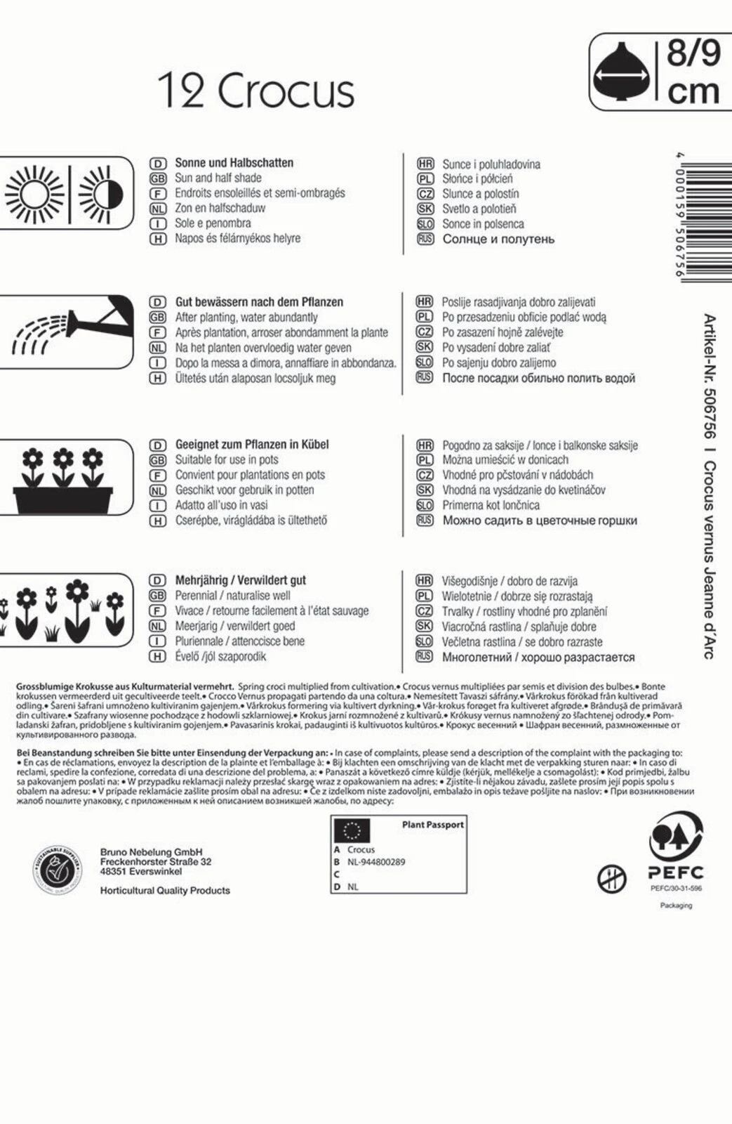Weiß wie Schnee ist der großblumige Krokus ‚Jeanne d`Arc‘ und bildet somit einen schönen Übergang vom Winter zum Frühling, wenn er seine ersten Blüten zeigt. Dies geschieht von März bis April, denn dann hat ‚Jeanne d`Arc‘ seine Blütezeit. Er wird bis zu 10 cm hoch und kann deshalb im Beet gleichermaßen wie im Kübel angepflanzt werden. Im Garten besteht zudem die Möglichkeit den Krokus verwildern zu lassen, wodurch auch in den nächsten Jahren immer wieder schöne weiße Blüten hervorkommen. Auch Nützlinge mögen den Krokus ‚Jeanne d`Arc‘.