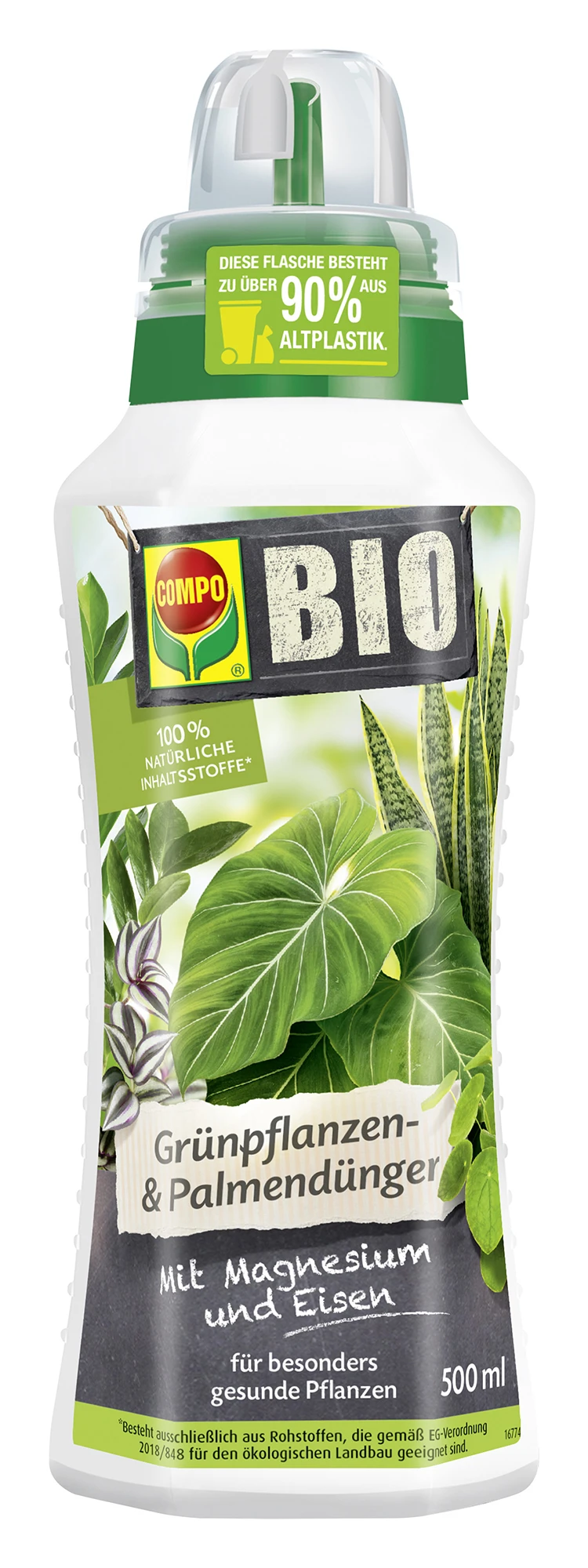 Spezieller BIO-Flüssigdünger für alle Grünpflanzen und Palmen. Hochwertige Nährstofformulierung mit extra Magnesium und Eisen für besonders gesunde und grüne Pflanzen und schnelles Wachstum. 100% natürliche BIO-Rohstoffe.