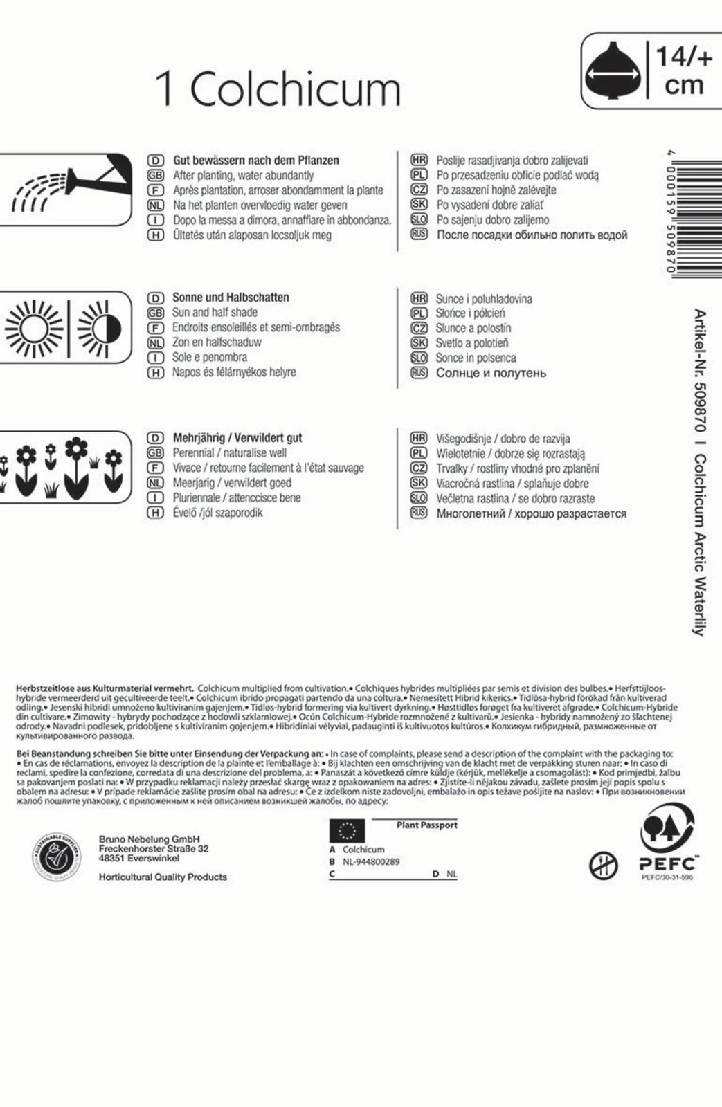 Die Herbstzeitlose ‚Arctic Waterlily‘ bildet von Ende September bis Ende Oktober große, schön gefüllte schneeweiße Blüten, die an Seerosen erinnern. Gerade im Herbst, wenn viele andere Blumen am Verblühen sind, stellen die strahlend weißen Blüten einen echten Blickfang dar. Die 15 bis 20 cm hohen Pflanzen sind winterhart und mehrjährig. Wachsen sie ungestört, verwildern sie hervorragend. An sonnigen bis halbschattigen Standorten fühlen sich Herbstzeitlose besonders wohl. Bienen und Hummeln freuen sich auf ihren späten Flügen über den wertvollen Nektar und Pollen.