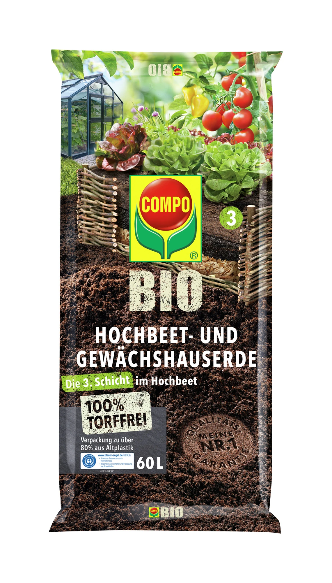Torffreie Bio-Erde zur Verwendung als oberste Deck- und Pflanzschicht im Hochbeet für Kulturen von Gemüse- und Kräuterpflanzen. Dank 100 % natürlichen Inhaltsstoffen gemäß EG-Öko-Verordnung für den ökologischen Anbau geeignet. Mit ausgewähltem Grünkompost und Rindenhumus zur Förderung der biologischen Aktivität. Sorgt für eine ertragreiche, aromatische Ernte. Für naturbewusstes und ökologisches Gärtnern.