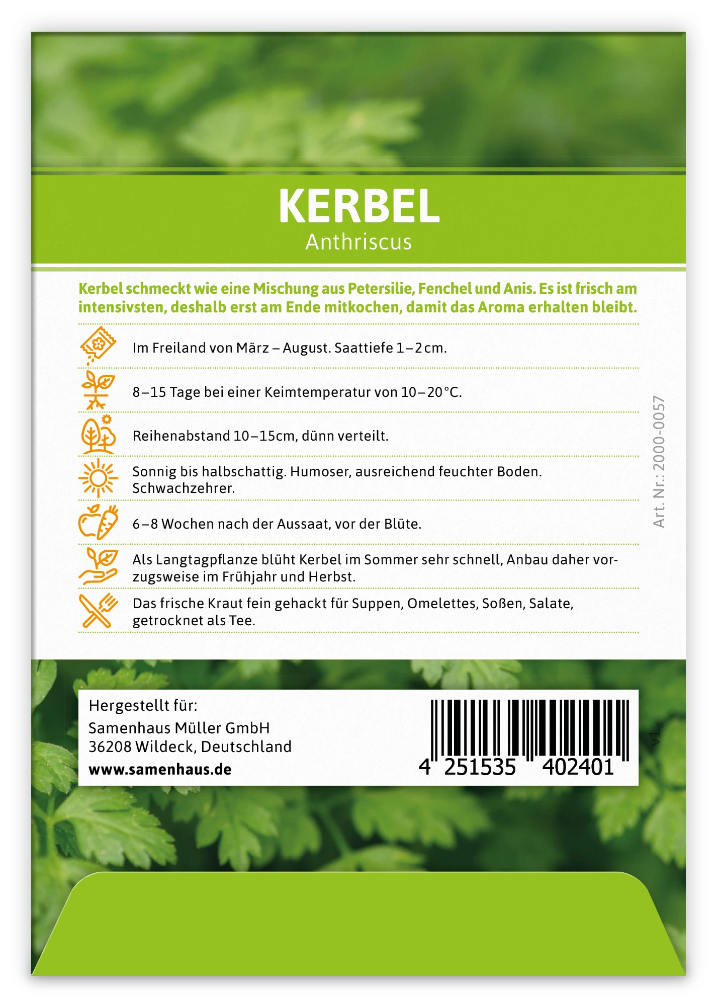 Als Langstagspflanze blüht Kerbel im Sommer sehr schnell, Anbau daher vorzugsweise im Frühjahr und Herbst.