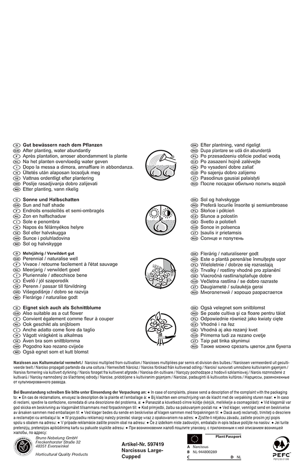 Narzissen gedeihen in sonniger wie auch in halbschattiger Lage in jedem normalen Gartenboden.
