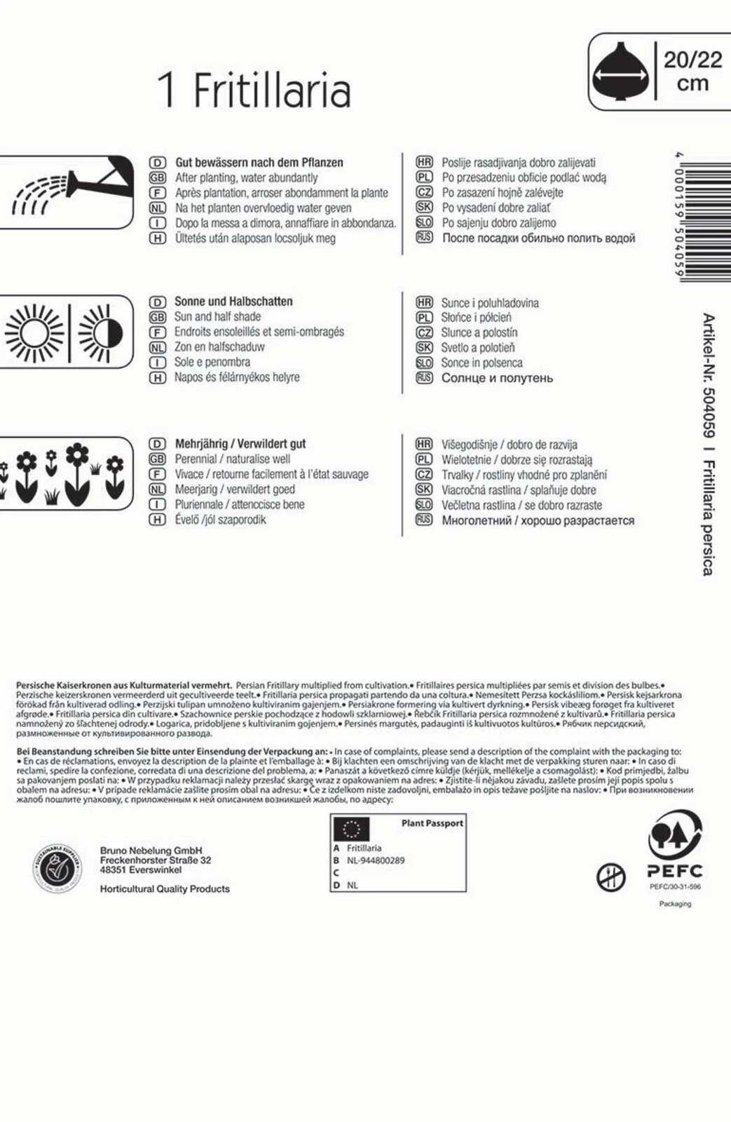 Bei der Persische Kaiserkrone sind an den ca. 80 cm hohen Stielen die purpurfarbenen Glöckchen wie an einem Schellenbaum angeordnet. Sie treiben im April und Mai aus und vermitteln einen warmen, behaglichen Eindruck. Die Persische Kaiserkrone fühlt sich an einem sonnigen Platz im Garten am wohlsten und verwildert mit der Zeit ohne Probleme. Alternativ kann man sie auch von Beginn an in Gruppen pflanzen, wodurch jede einzelne Pflanze noch imposanter wirkt.