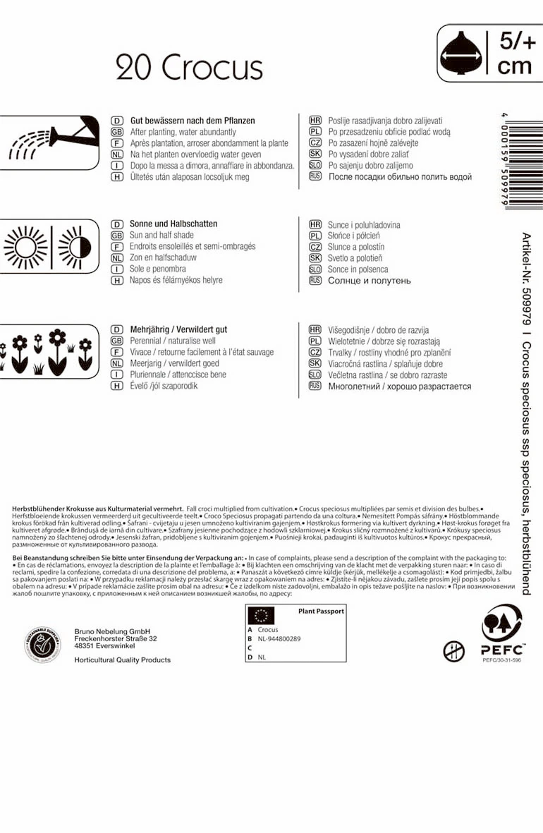 Der Pracht-Herbst-Krokus von Kiepenkerl ist ein im September und Oktober blühender Krokus mit hellen lila-blauen Blüten, die dunkel geädert sind. Er ist mehrjährig und winterhart und verwildert gut, wenn er über die Jahre ungestört wachsen kann. Damit sich im Herbst an den ca. 15 cm hohen Stängeln die schönen, filigranen Blüten zeigen, müssen die Blumenzwiebeln während der Pflanzzeit von August bis September direkt nach dem Kauf gepflanzt werden. Ein sonniger oder halbschattiger Standort ist hierfür ideal. Schon kurz nach der Pflanzung bilden die Krokusse ihre Blüten, aber noch keine Blätter aus. Diese entwickeln sich erst im Frühjahr und sterben im Juli vor der neuen Blüte ab.