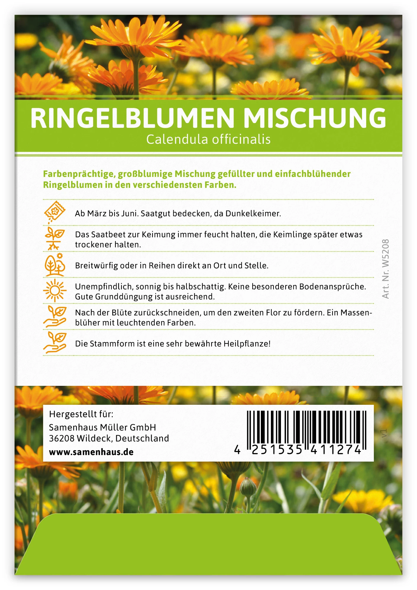 Einhundert Ringelblumensamen Tütchen ergeben ein Meer von Blüten, die es in sich haben. Die zauberhaften Blumen mit dem herben Duft eignen sich sehr gut als Give Away oder Werbegeschenk für Kunden und Geschäftspartner. Ihren Slogan oder das Logo können Sie mit einem Aufkleber aufbringen.