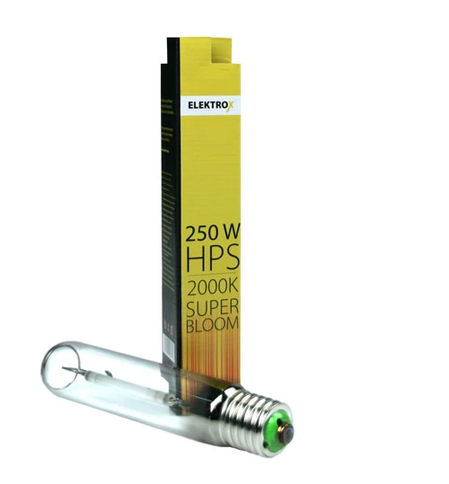 Die Elektrox Super Bloom Natriumdampflampe 250 W eignet sich für die Blütephase deiner Pflanzen. Aufgrund der Farbtemperatur von 2000 K, der warmweißen Lichtfarbe und dem gelb-roten Farbspektrum ist diese Lampe perfekt für die Blütenbildung von Pflanzen. Die Elektrox Super Bloom verfügt über eine E40 Fassung und muss für den Betrieb an ein Vorschaltgerät angeschlossen werden. Mit 250 W erreicht diese Natriumdampflampe eine Lichtleistung von 27500 Lumen und damit eine Lichteffizienz von 130 lm/W.