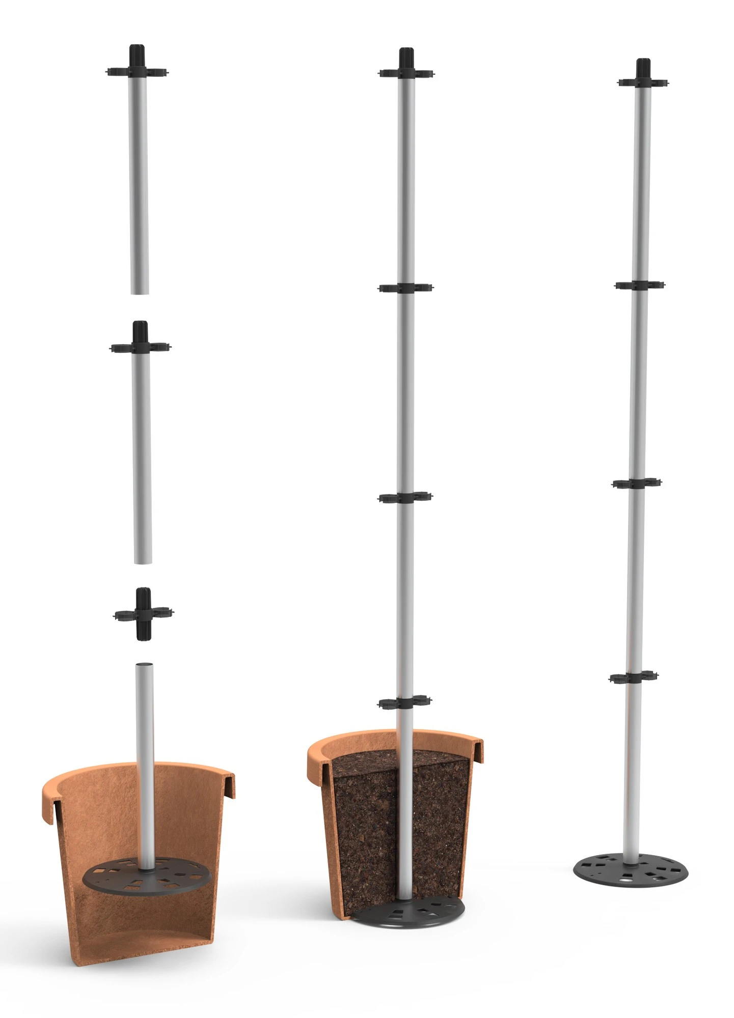 Eigene Tomaten anbauen ist mühsam? Die Rankhilfen sind instabil und fallen immer um? Nicht mit TOMATO BUDDY. Die universell einsetzbare Rankhilfe TOMATO BUDDY ergänzt jeden gängigen Pflanztopf und wertet diesen perfekt auf. Durch die Rohre aus Aluminium und den integrierten Standfuß bietet TOMATO BUDDY hervorragende Stabilität und kippt nicht um. Die Rankhilfe wird vor dem Bepflanzen im Pflanztopf platziert und danach mit dem Gewicht der Erde fixiert. Mit den robusten Befestigungshaken lassen sich die Pflanzen an der Rankhilfe anbringen.