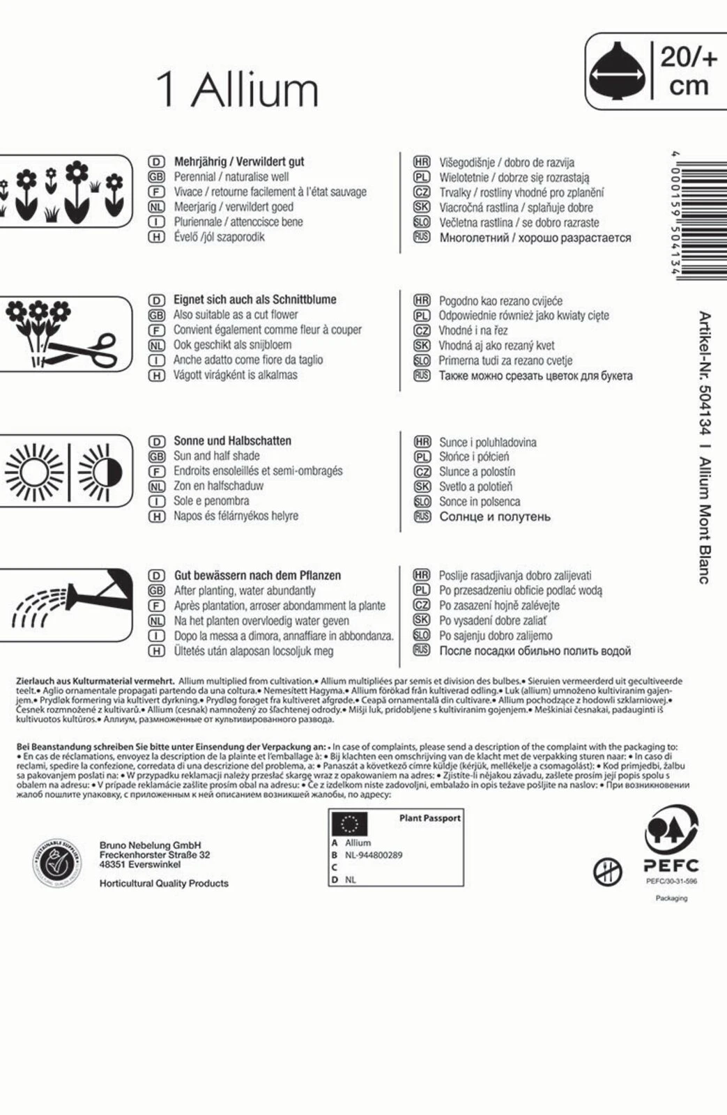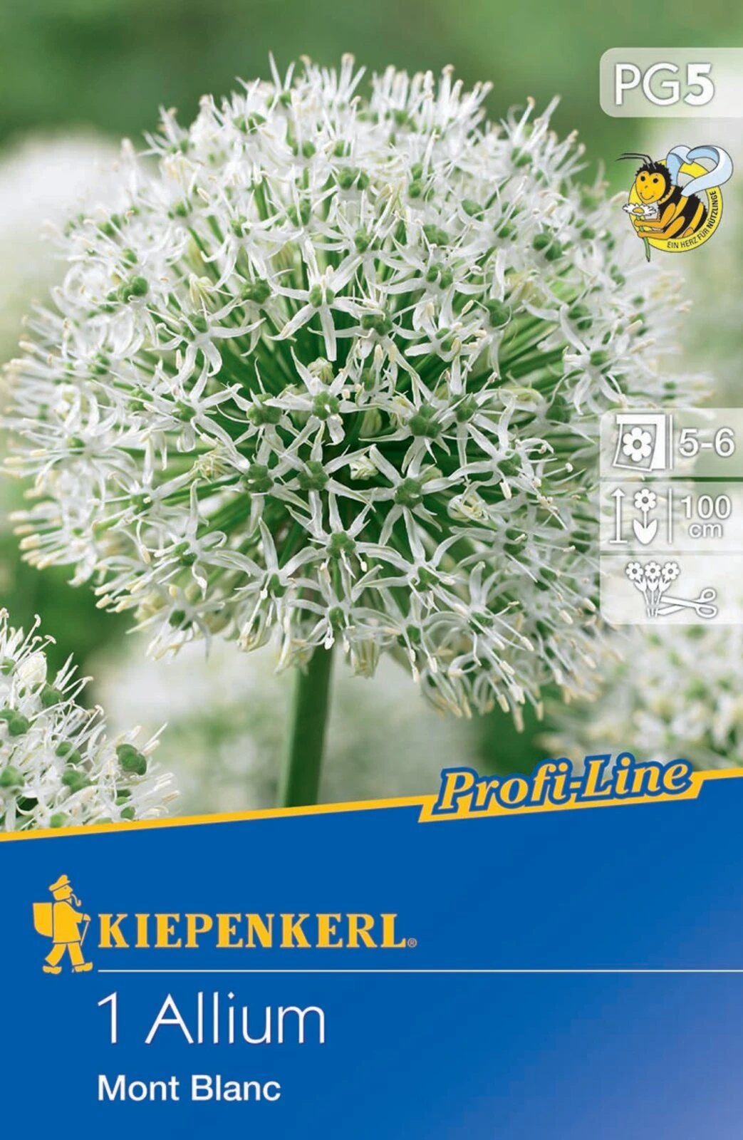 Der Profi-Line Zierlauch ‚Mont Blanc‘ ist ein imposanter Riesen-Zierlauch mit großen weißen Blüten, die wie Schneebälle auf Stielen aussehen. Er kann wunderbar mit blauen oder violetten Zierlauchsorten kombiniert werden. ‚Mont Blanc‘ wächst bevorzugt an einem sonnigen oder halbschattigen Standort, wird ca. 100 cm groß, steht im Mai und Juni in Blüte und verwildert gut von Saison zu Saison. Die Blütenstände mit den vielen kleinen Einzelblüten sind unter Insekten eine begehrte Nahrungsquelle und machen auch als Schnittblume in der Base eine ausgezeichnete Figur.