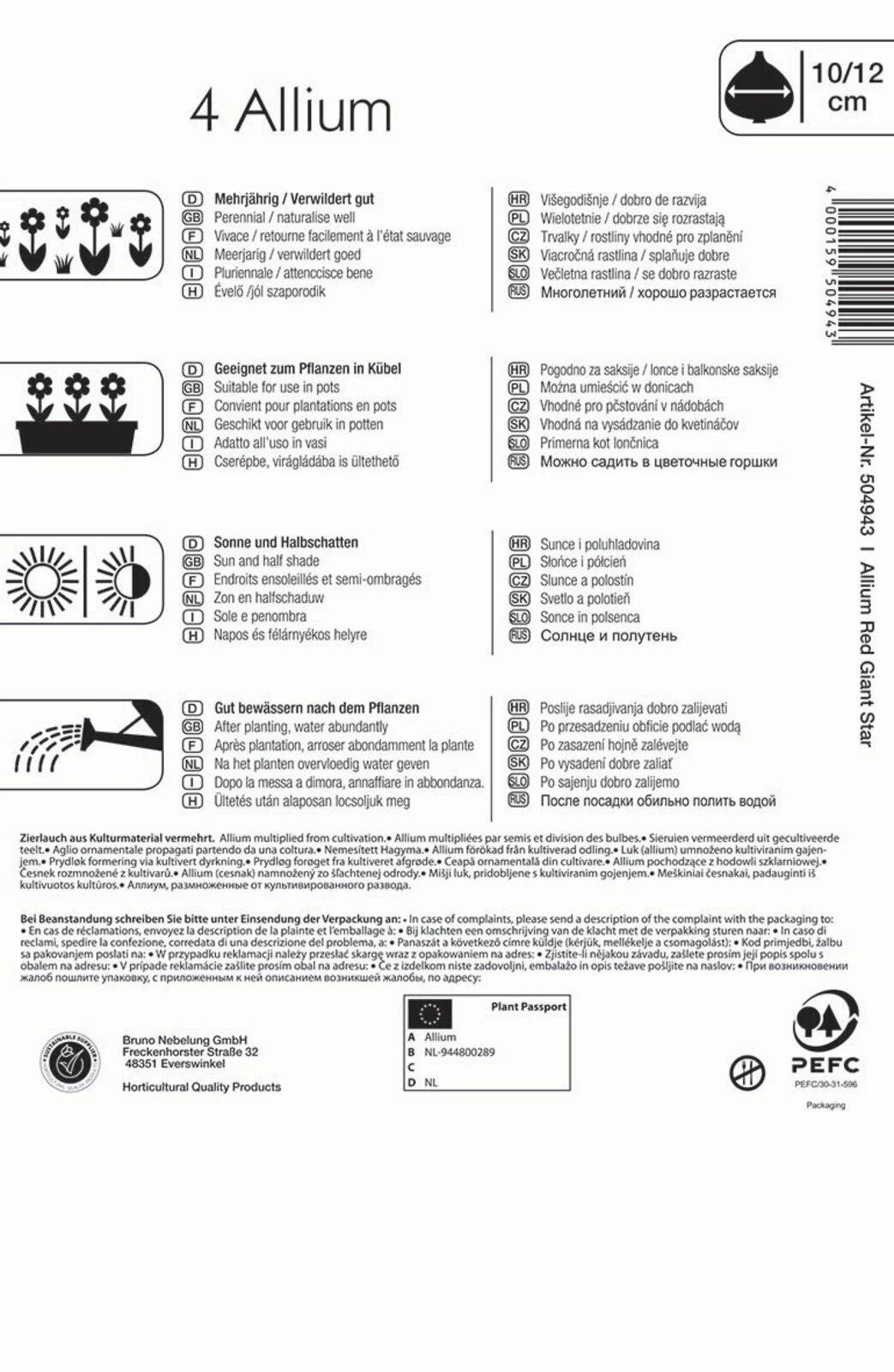 Den Zierlauch ‚Red Giant Star‘ schmücken filigrane Blütentrauben mit vielen weißen Einzelblüten. Sie bilden lila Dolden, die vom bläulichen Laub geziert werden. In Kombination mit den dunkelblauen ‚Muscati armeniacum‘ kommen diese Blumen der Profi-Line besonders schön zur Geltung. Ihre Blüte von Mai bis Juni kündigt den nahenden Sommer an. Die Blumen zeichnen sich durch besondere Nützlingsfreundlichkeit und eine mehrjährige Lebensdauer aus, die sie zum Verwildern bringt. Auch zur Pflanzung im Kübel sind sie gut geeignet. Dann können sie unter schützenden Sträuchern, in der Garage oder an der Hauswand überwintert werden. Um im neuen Jahr blühfähige Blüten zu entwickeln, brauchen die Zwiebeln zwingend eine Kühlphase. Solange Fröste von -10° C nicht erreicht werden, kommen die Pflanzen auch ohne weiteren Winterschutz gut aus. Ab Mitte bis Ende März können die Gefäße aus dem Winterquartier hinaus ins volle Licht gestellt werden.