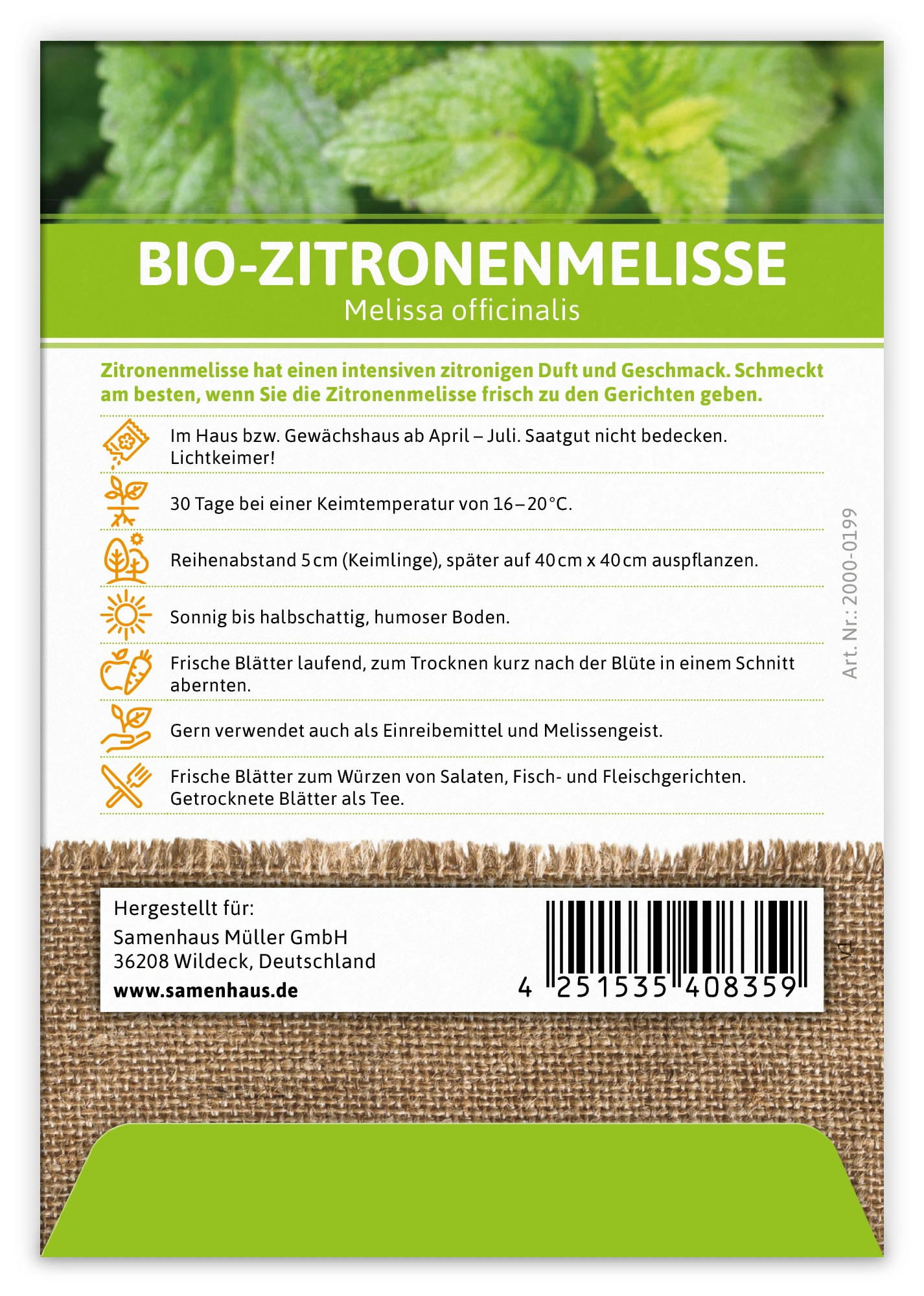 Zitronenmelisse hat einen intensiven zitronigen Duft und Geschmack. Schmeckt am besten, wenn Sie die Zitronenmelisse frisch zu den Gerichten geben.